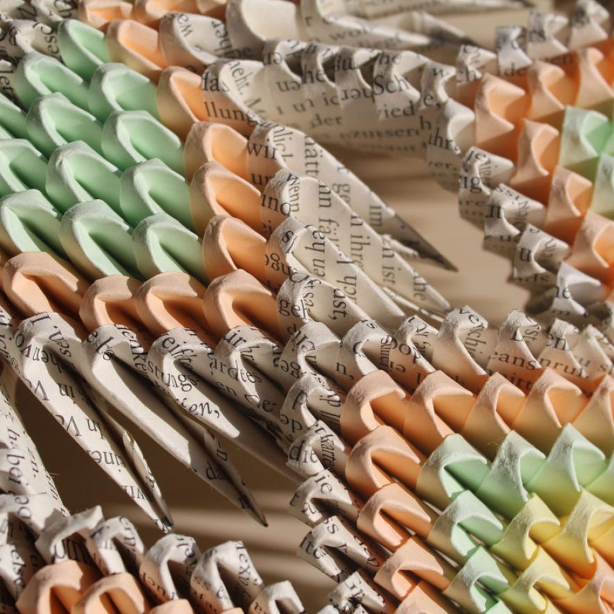 Aus Papier gefaltete Module werden zu Körpern zusammengesteckt. Dabei sind der Fantasie keine Grenzen gesetzt. Es können wunderschöne abstrakte Gebilde entstehen sowie Figuren, die je nach Modulanzahl (unter 10 bis in die Tausenden) und Ausgangsformat des Papiers in ihrer Größe varrieren.