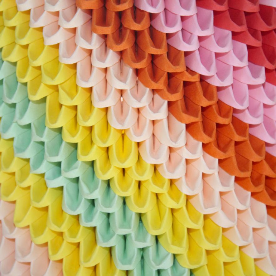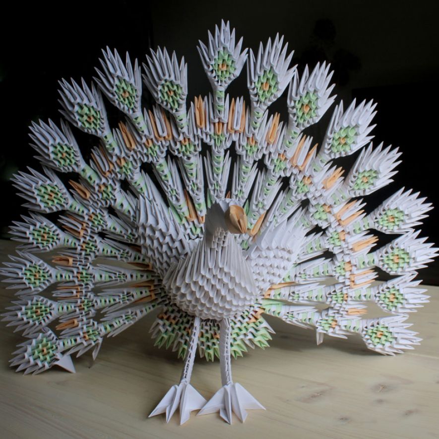 Aus Papier gefaltete Module werden zu Körpern zusammengesteckt. Dabei sind der Fantasie keine Grenzen gesetzt. Es können wunderschöne abstrakte Gebilde entstehen sowie Figuren, die je nach Modulanzahl (unter 10 bis in die Tausenden) und Ausgangsformat des Papiers in ihrer Größe varrieren.