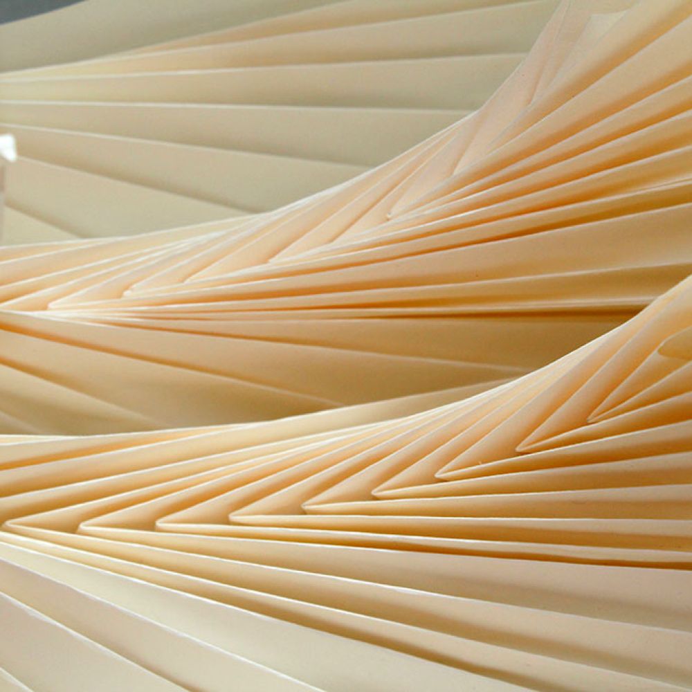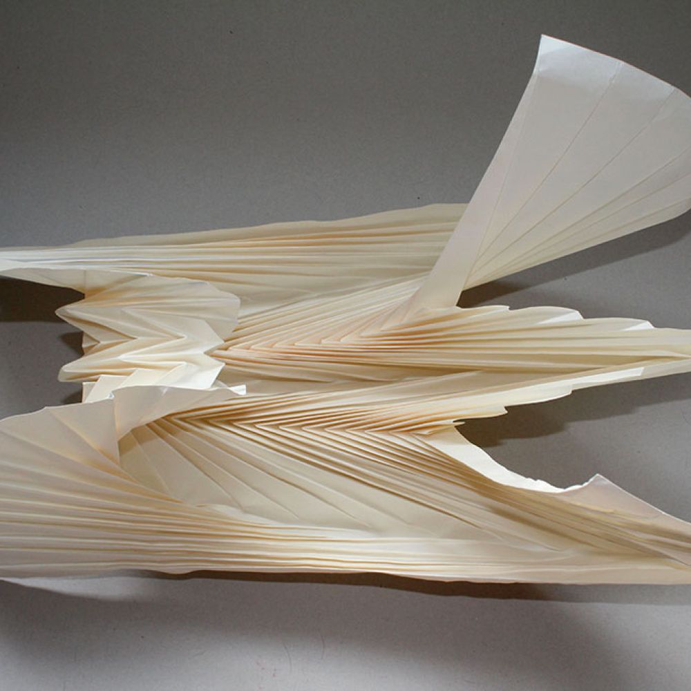 Einblicke in Experimente mit Papier: durch Falten, Schneiden und Drehen entstehen räumliche Strukturen, die später auch in meinen aktuellen Arbeiten eine Rolle spielen.